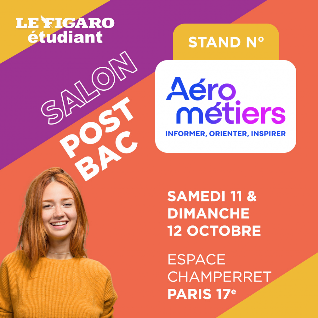 Retrouvez Aérométiers au Salon Post Bac Paris, organisé par le Figaro Étudiant, les 11 et 12 octobre à l’Espace Champerret (Paris 17e).