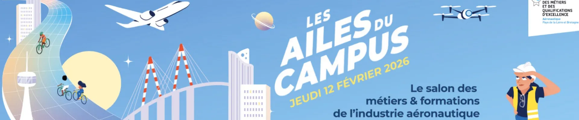 Pour sa 10ᵉ édition, le Campus Aéronautique organise à nouveau le salon incontournable de l’industrie aéronautique « Les Ailes du Campus », qui se tiendra le jeudi 12 février 2026 à la base sous-marine de Saint-Nazaire. Cet événement majeur en région Pays de la Loire s’adresse aux collégiens, lycéens, étudiants et apprentis désireux de découvrir les métiers et les formations d’une filière d’excellence.